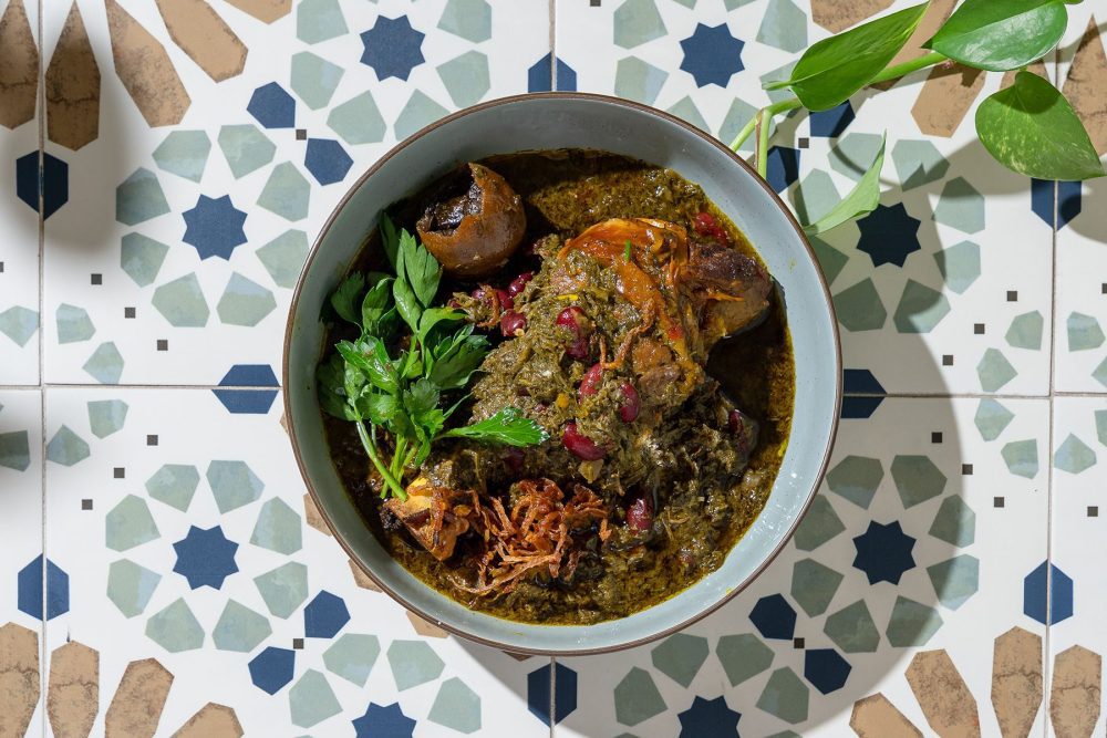 Persian classic, no compromise. Ghormeh Sabzi is a dense stew packed with lamb shank, beans, dried lime, and an aggressive mix of herbs: parsley, cilantro, fenugreek, and green onion. Slow-cooked until the broth goes dark and the taste hits hard—rich, tangy, and unmistakable. Served with saffron rice. The veggie version ditches lamb, loads up on beans and mushrooms. If you want flavor, you get it—done right, no shortcuts.