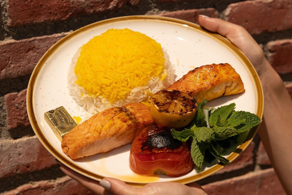 Parkway’s Grilled Salmon pulls zero punches. Center-cut, fresh—not frozen—filet, flame-grilled till the outside is just golden and the inside stays moist. You get this with Persian-style saffron rice, roasted tomato and grilled lemon, and a hit of fresh mint and onion. No dry flakes, no fishy smell, just buttery, clean flavor. This isn’t generic grilled salmon from a chain. It’s real food, real nutrition, and you actually want to finish every bite.